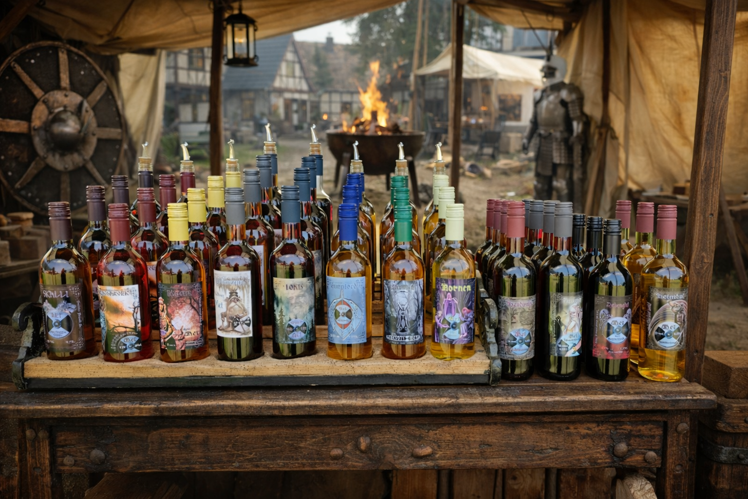 Seit rund zehn Jahren verkaufen sie mit viel Erfolg ihren liebevoll gebrauten, harmonisch abgestimmten Met auf verschiedenen Mittelaltermärkten wie dem WUMS, dem Greenfield Festival, am Schloss Wyher